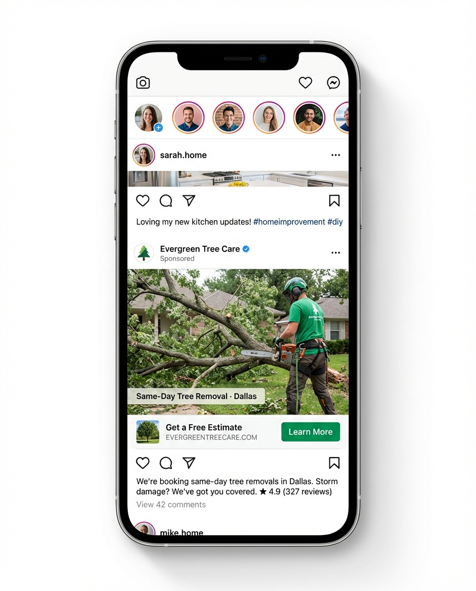 We know which audiences convert for tree services, window contractors, flooring companies, and gutter installers — and we know the different follow-up timing each niche requires.